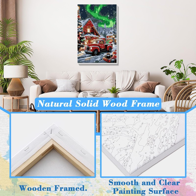 Skyboda Christmas Paint by Numbers Kit for Adults Beginners with Frame, Christmas Tree Adult Paint by Number Kits on Canvas, Easy DIY Oil Painting Kits for Home Decor, 8x12in(Truck House Aurora)
