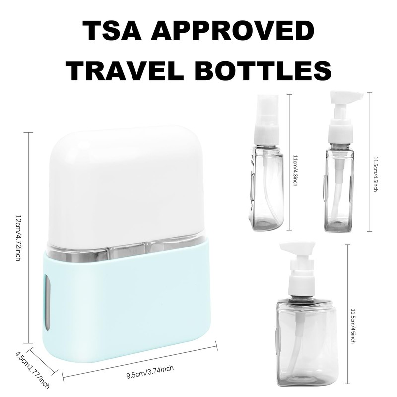 Skycase Travel Bottles - Leak Proof Refillable Tsa Approved Travel Size Toiletries, 3 in 1 Liquid Bottles Containers with Labels and Funnel Airplane Accessories Kits for Lotion Liquid (Blue)