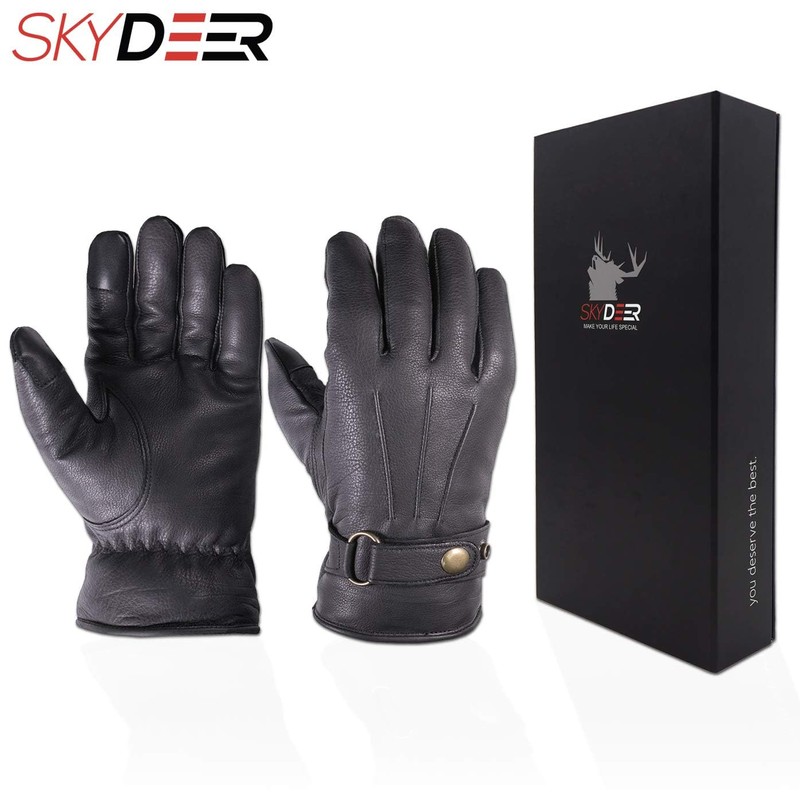 SKYDEER Premium Genuine Deerskin Leather Touch-Screen Winter Driving Gloves for Extreme Cold Condition (SD8681T/M)