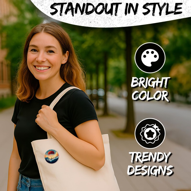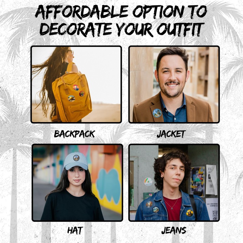 - Versatile Style for Every Vibe. Whether you’re a trendsetter, an outdoor explorer, or just love expressing yourself, these cute pin buttons are the perfect accessory. Layer them for a bold look or let a single pin speak volumes—there’s one for every personality.