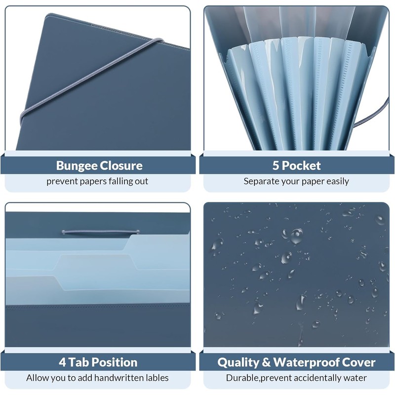 SKYDUE A4 Document Folder, Expanding Folder A4 with 5 Pockets and 2 Compartments for Presentation, DIN A4 Folder, Folder System and 2 Elastic Bands, A4 Folder (Blue)