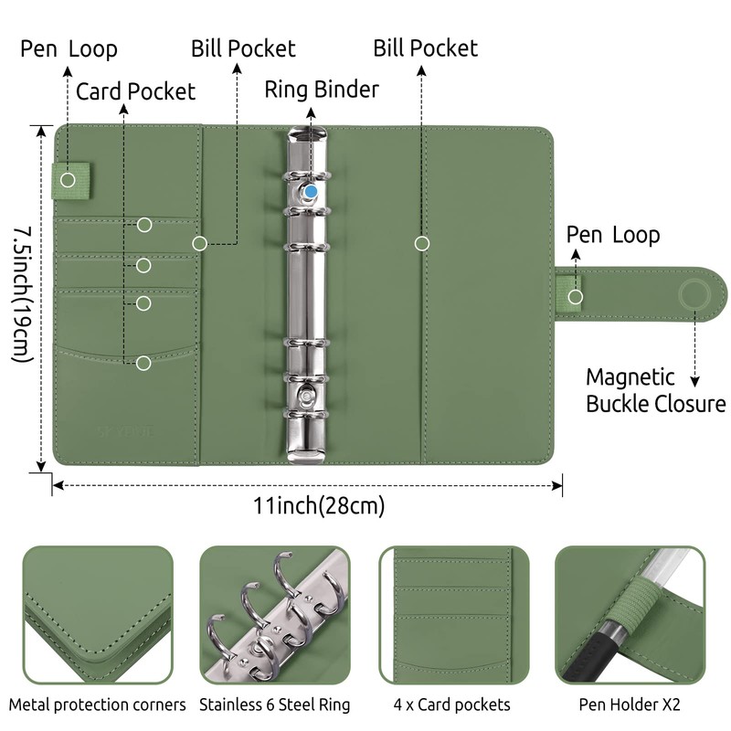 - Cute Budget Binder:Premium A6 binder has many hidden compartments and pen hoops,which is convenient for storing pen, passports, ID cards, bank cards.Stainless 6 steel ring allows to add or remove items flexibly, prevent from falling off.
