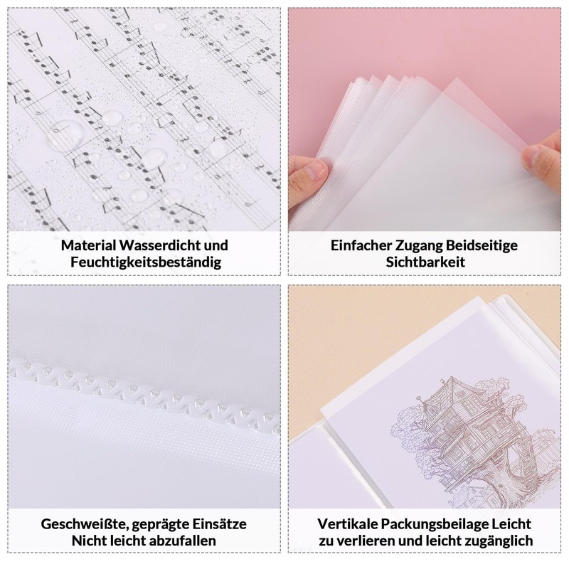 • Optimal capacity with 30 transparent pockets - Equipped with 30 high-quality, transparent sleeves, the folder offers space for up to 60 documents. The specially designed sleeves guarantee stability and durability - perfect for long-term protection of your important documents.