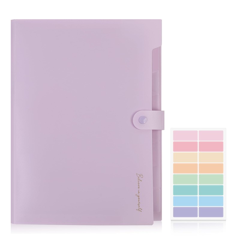 SKYDUE Dokumentenmappe A4, Fächermappe Mit Mit 8 Fächern, Ordner Mit Innentasche, Aktenordner/Folder/Ordnungsmappe Für Schule, Büro, Studium & Zuhause,Robuster PP-Kunststoff/Lila
