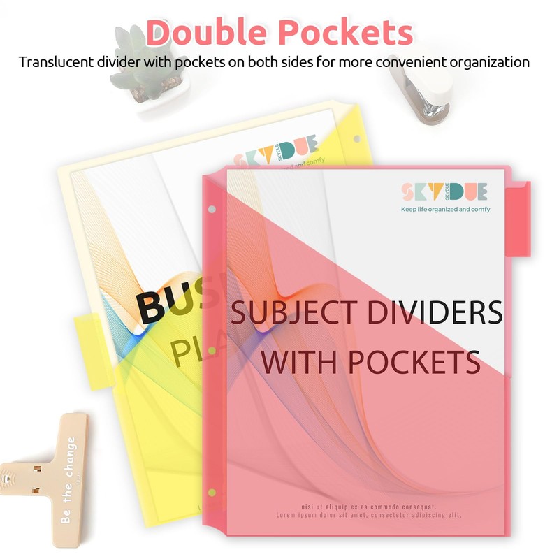 SKYDUE Plastic Binder Dividers with Two Pocket