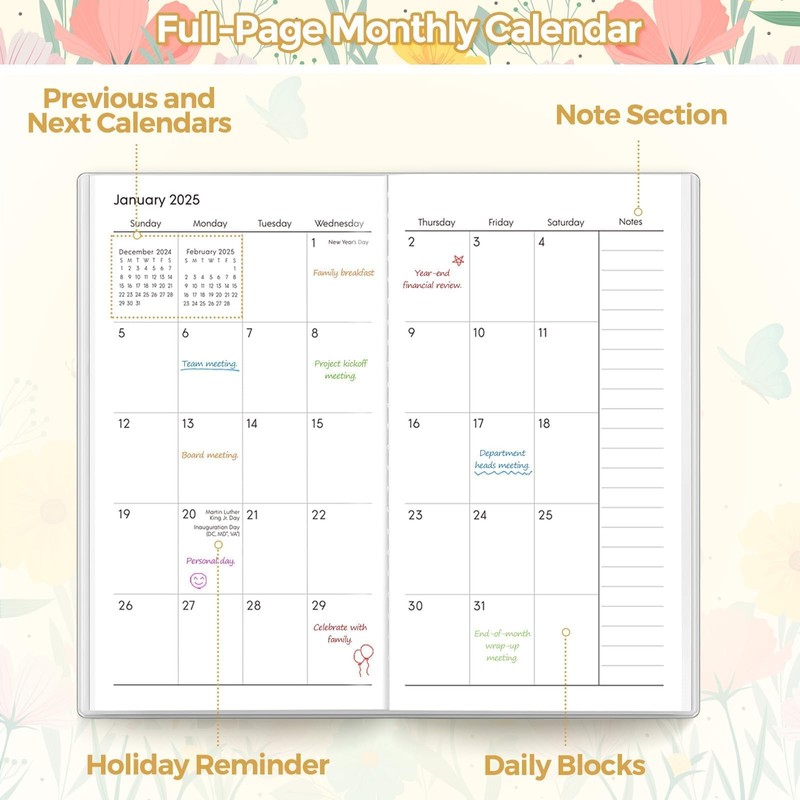 - Elegant Floral Cover Design: Featuring an elegant floral cover, our pocket calendar adds a touch of beauty and personalization to your daily routine while keeping your plans organized
