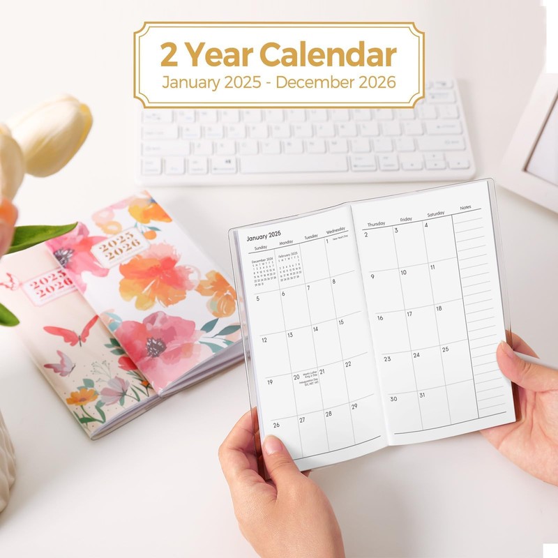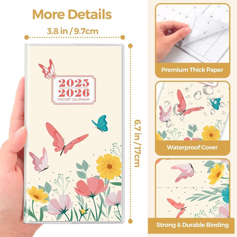 - High-Quality & Durable Design: SKYDUE 2-year pocket calendar 2025-2026 features a protective plastic cover that enhances durability, shielding it from everyday wear and tear. Its sturdy construction keeps your important records intact and easily accessible, while high-quality thick paper prevents ink bleed-through