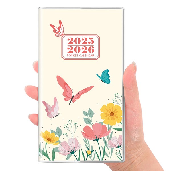 SKYDUE Pocket Calendar 2025-2026, 2-Year Small Monthly Pocket Planner for Purse, 6.7" x 3.7", Compact Design with Plastic Sleeve, Perfect for On-the-Go Planning and Organization