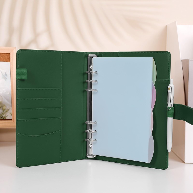 - **High-quality material**: The SKYDUE A5 ring binder refillable is covered with a soft PU leather that is both durable and stylish, and offers practical credit card slots as well as additional storage solutions