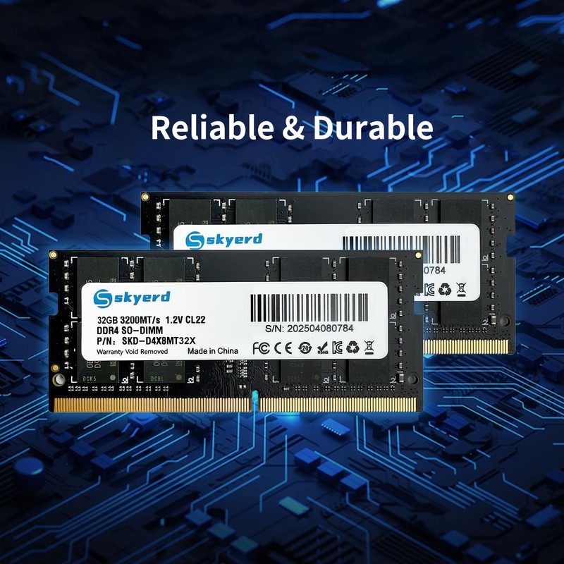 Skyerd DDR4 64GB Kit RAM (2x32GB) 1RX8 3200MHz(2933MHz or 2666MHz) PC4-25600 (PC4-23400, 21300) CL22 Unbuffered Non-ECC 1.2V SODIMM 260 Pin for Notebook Laptop AIO Memory Upgrade