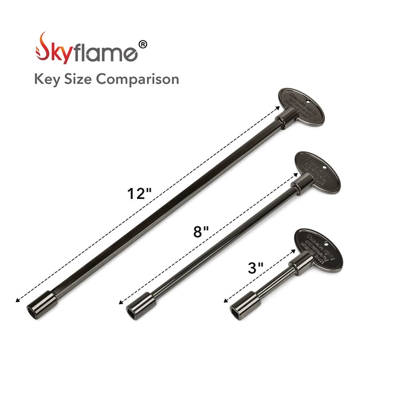 Skyflame Skyflame Universal Gas Valve Key Fits 1/4" and 5/16" Gas Valve Stems, for Fire Pit and Fireplace, Flat Black - 12 Inches