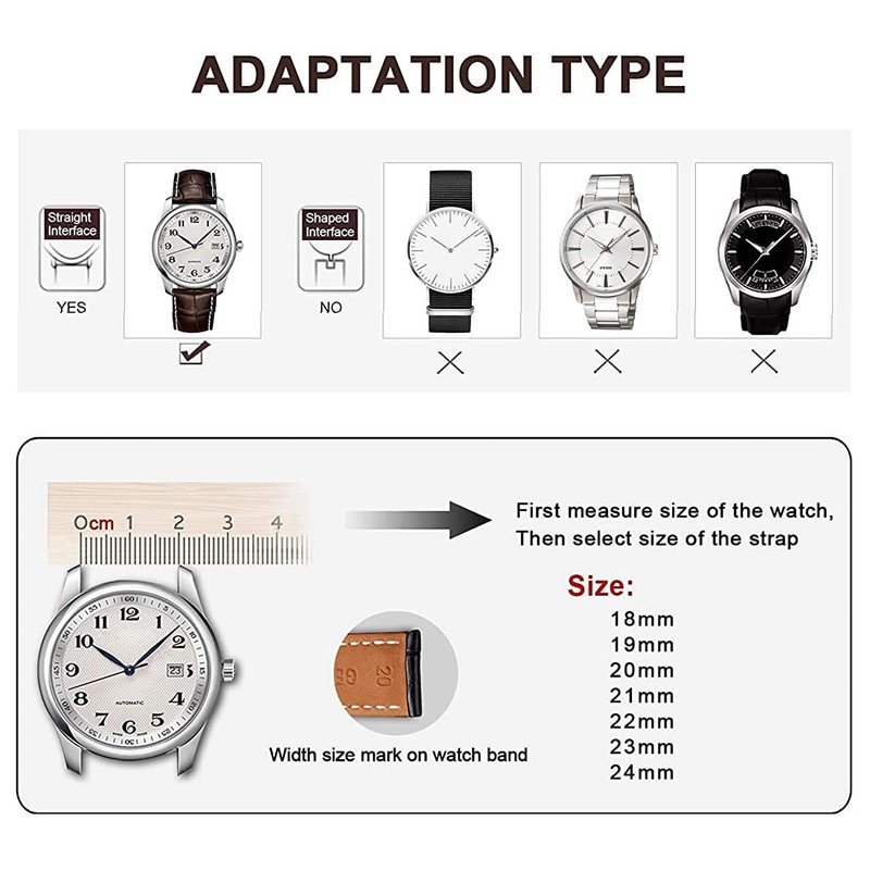 - FIT YOUR WRIST—Our canvas straps fit wrists from about 5.5 inches to about 8.25 inches, depending on the width of the strap and watch size, it will fit most men and women. When attaching the lugs to the watch, accurately measure the width of the lugs. Accurately measure the width of where the strap connects to the watch. Note: 1mm error may cause inappropriate fit, 100% accurate dimensional measurement should be maintained.