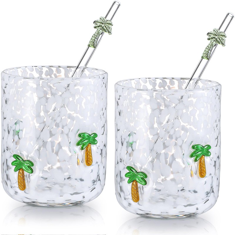 - Coconut Tree Glass Cup Set: the package includes 2 clear glasses with coconut tree icons and 2 matching straws, ideal for daily use with your family or as a thoughtful gift for friends, sisters