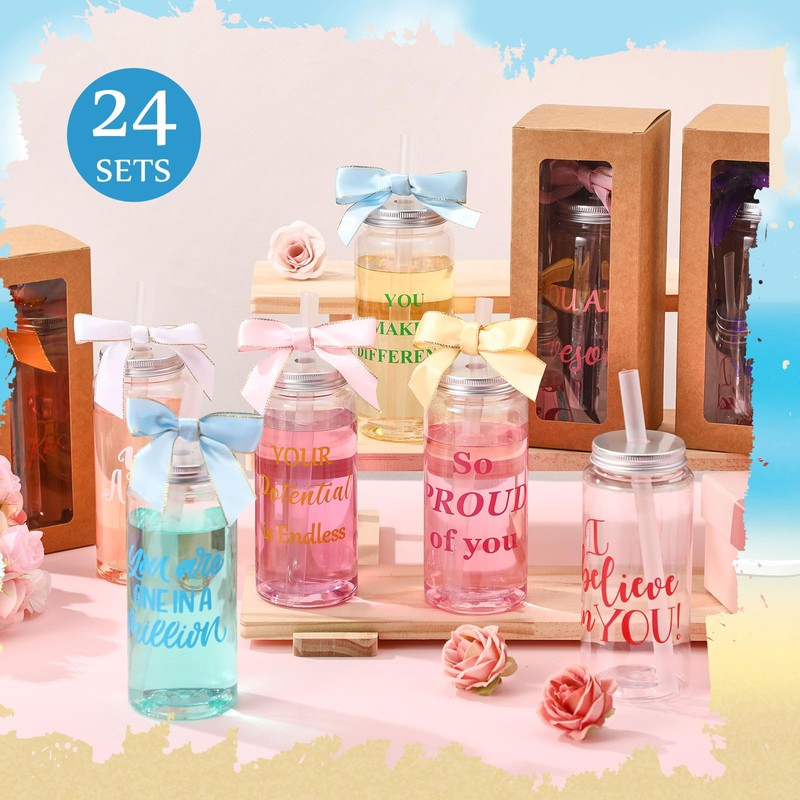 - Inspirational Design: these plastic cups are printed with positive words, inspiring, as a thank you gift, we provide gift boxes and twist bows, which is a way to express gratitude to employees, teachers, family, friends, volunteers, social workers, secretaries and assistants