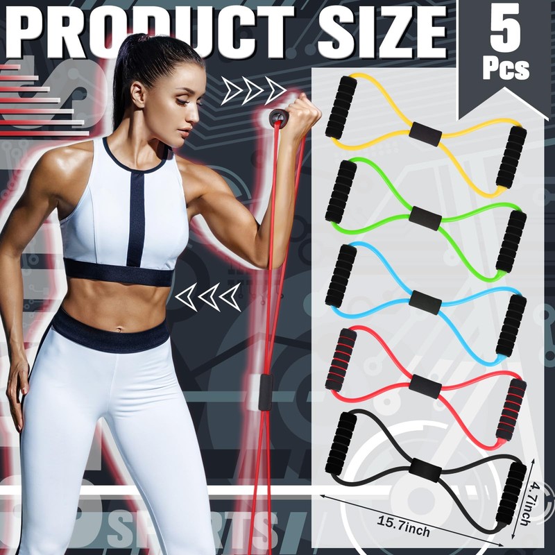 Skylety Figure 8 Fitness Resistance Bands with Handles Set of 5 Exercise Bands for Women Men Rope 8 Word Elastic for Arm and Shoulder Stretch Yoga Gym Fitness Muscle Training Chest Expander