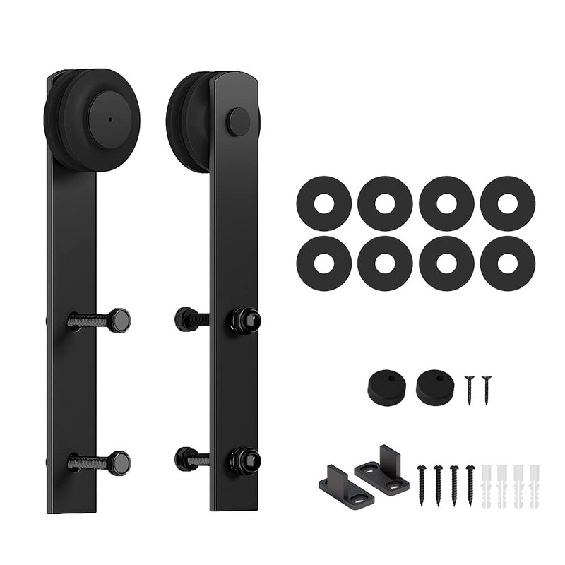skysen Sliding Barn Door Hardware Roller Set Black (I Shape Hanger Set)