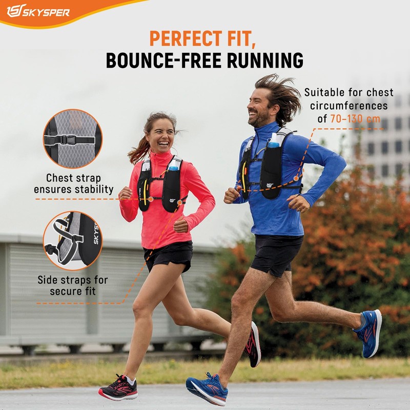 SKYSPER Hydration Backpack Hydration Vest Ultra Light 5L Hydration Bag with Soft Bottles 500 ml Hydration Vest for Hiking Marathon Trail Running Cycling