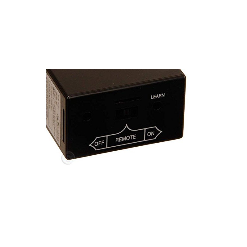 - Receiver box features Learn function to pair with existing remote control and manual slider switch with Off/Remote/On positions