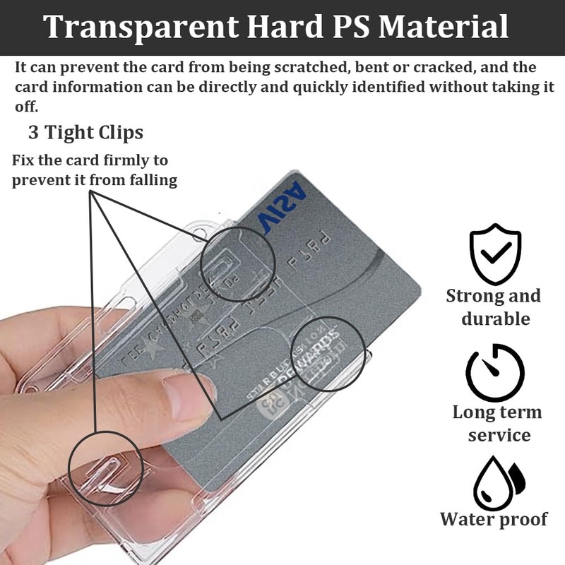 - Transparent hard PS material & sturdy and durable: The ID card holder made of high-quality transparent PS hard material prevents the card from being scratched, bent or broken, and the card information can be identified directly and quickly without having to take it out. The durable plastic provides excellent protection for your ID, student ID, work card, etc.