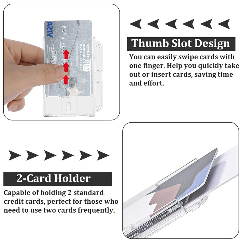 - Thumb slot design and double-layer card slot: the practical thumb slot allows you to effortlessly slide the card with one finger. The clear card sleeve holds two cards on the front and back. The convenient top loading design keeps the card securely in place and prevents it from falling out.