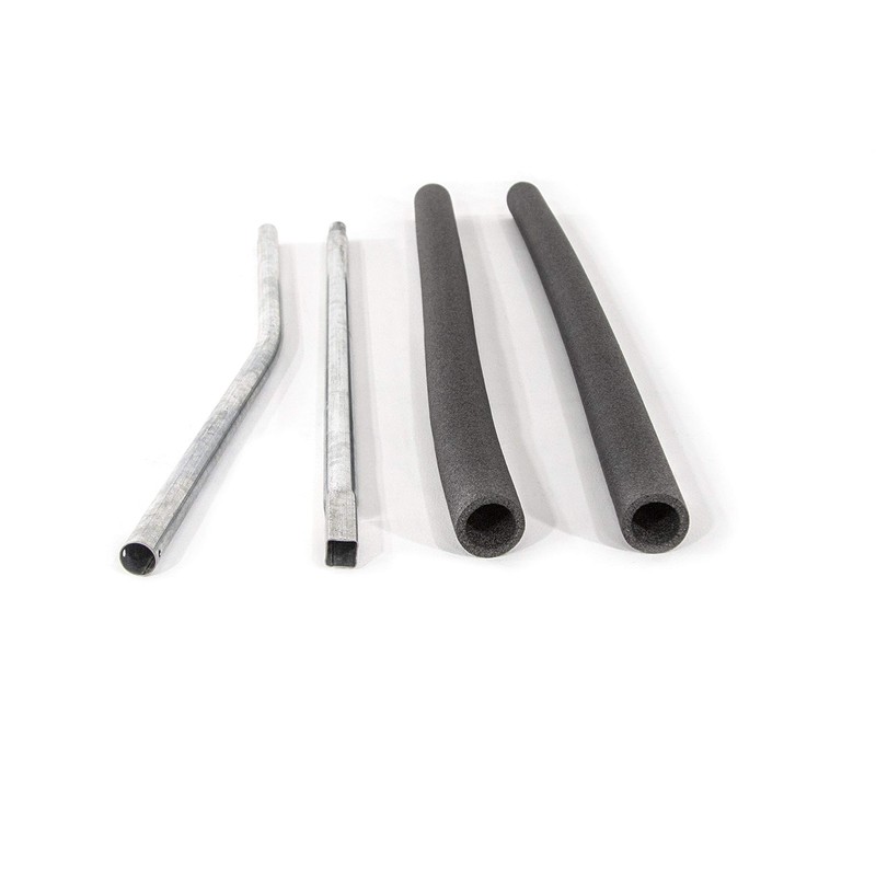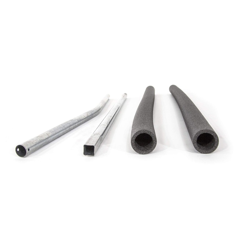 This replacement enclosure straight tube and curved tube are designed to fit reinforced T-sockets which increase the stability and prevent structural twisting. This straight and curved tubes are constructed of weather and rust resistant galvanized steel. This Kit includes foam sleeves for the enclosure pole. The Enclosure straight tube, curved tube, and the two foam sleeves make one complete enclosure pole.
