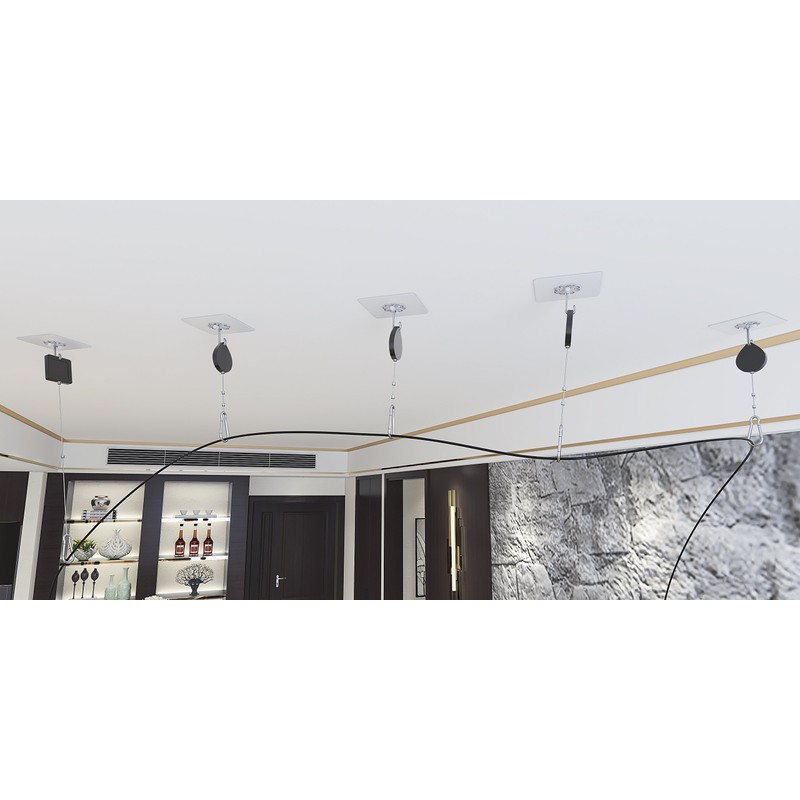 - Cable Management System Includes Everything Needed and More with 6 x Retractable lines and Adjusting tools, 6 x Adhesive Hooks and 8 x Carabiners: