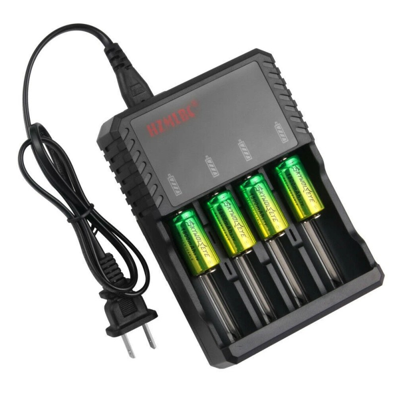 SkyWolfEye 20pcs SkyWolfEye 16340 Battery 3.7V 1800mAh Rechargeable Cell + 4 Slot Charger