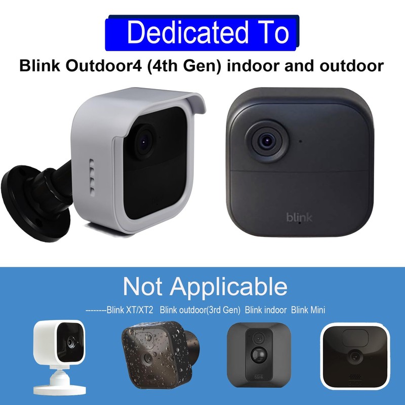 - -----【New Design】 Specifically designed this camera accessory for the New BlinkOutdoor4 (4th Gen), Which is perfectly compatible with the All-New BlinkOutdoor4 (4th Gen) camera. Taking into full consideration the night vision and two-way audio features of the New BlinkOutdoor4, we have adopted the design concept of louvered side panels, allowing for no interference to the dual audio while avoiding damage to the camera from wind and rain. (We have also designed a charging port for your camera. You can purchase our waterproof charging cable to work with for a more perfect effect. Both black and white cables have ASIN: B0CNBL4M1L/B0CNCHXXLT.) (Not Included Blink Cameras)