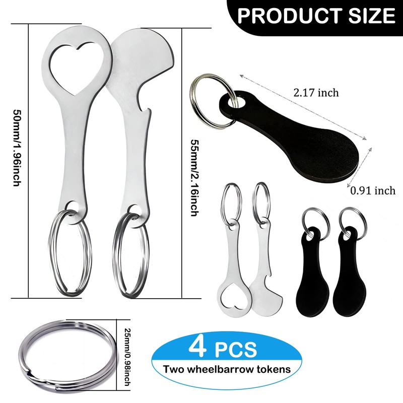 - 🛒【Easy to Carry】Use the included key chain to easily hang it on your keys or put it on your backpack. Not only can you use it to unlock your shopping cart, but you can also use it as a bottle opener.