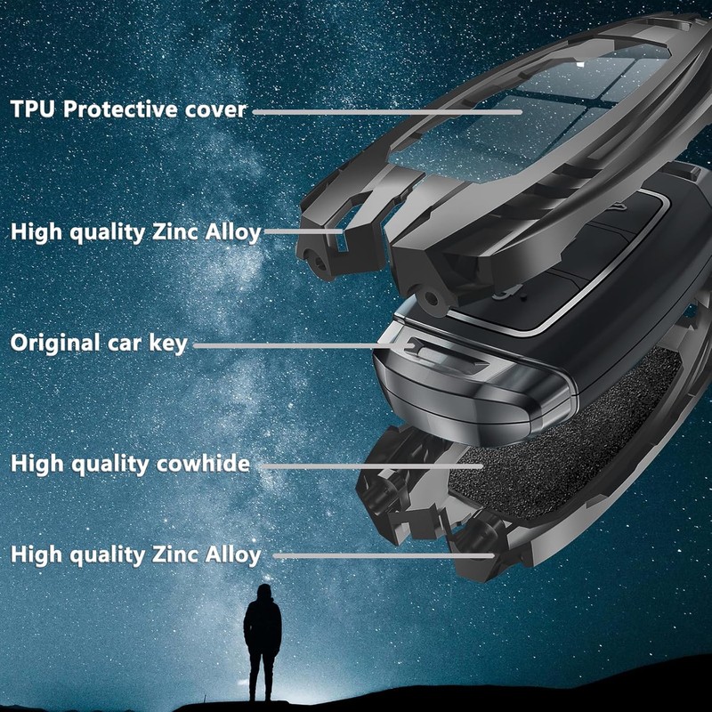 High quality:The zinc alloy keycase is composed of premium zinc alloy, TPU, and genuine leather.The original car key has a 1:1 mould opening with precise buttons position