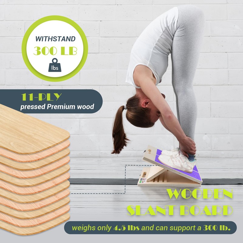 - [Scientific Design Wooden Slant Board] Our calf stretcher slant board has a foldable design. A full PVC sandpaper top and a non-slip EVA base provide a better grip to prevent slipping during exercise and use.