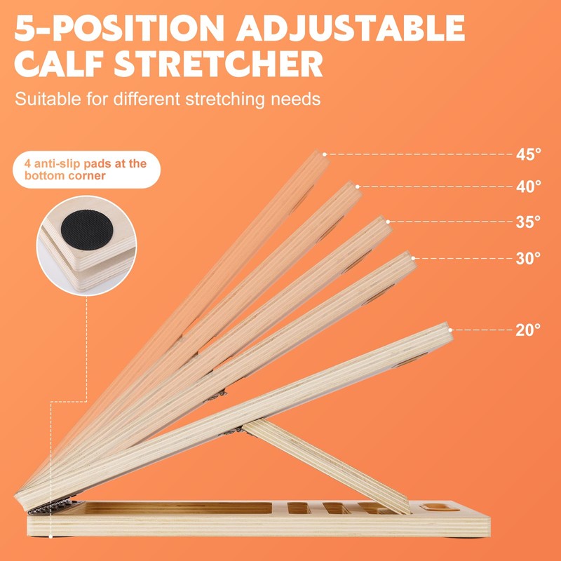- Multi-function calf stretcher This calf stretcher slant board helps to stretch the calf, buttocks, heels, ankles, etc. It is an excellent auxiliary tool for front and back leg stretching; it also helps to improve core strength, improve body flexibility, and improve muscle flexibility and mobility