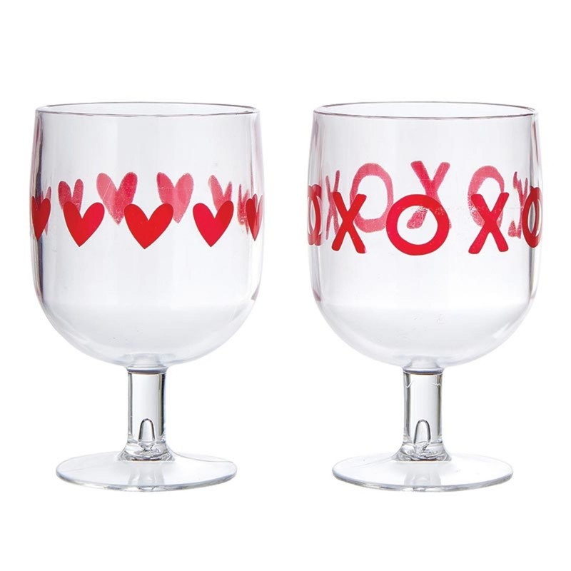 Slant Collections Unbreakable Valentine's Day Wine Glasses Stackable Acrylic Stemmed Wine Glasses, Set of 4, Hearts/XO
