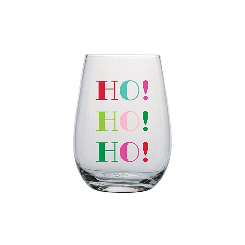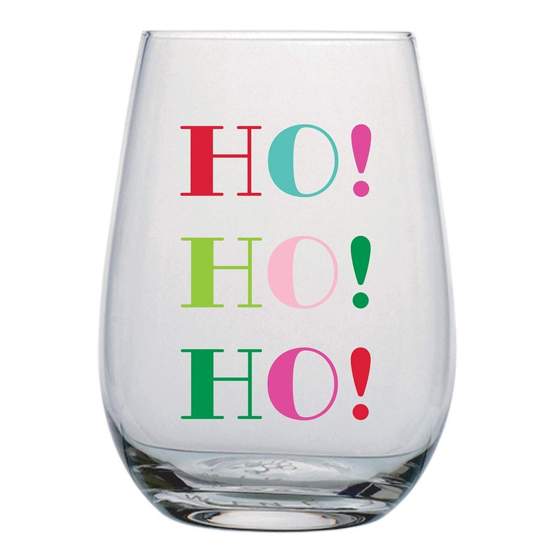 Slant Collections Wine Glass Gifts Holiday Stemless Wine Glass, 20-Ounce, Ho! Ho! Ho!
