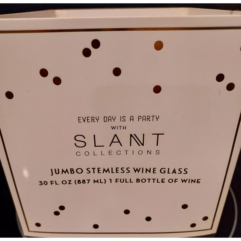 slant collections Wine Glass. Stemless 30oz. NEW. GLASS. "Full Of Thanks". Holds 1 Full 750ml Btl.