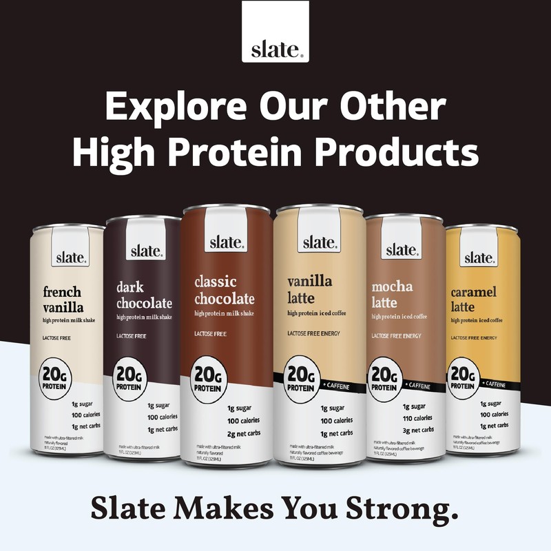 Slate Milk - High Protein Nutrition Shake - Milk Chocolate - 32g Protein, 1g Sugar, 150 Calories, 2g Net Carbs - Lactose Free - No Added Sugar - Breakfast Boost, Post Workout - 11 fl oz, 12 Cans