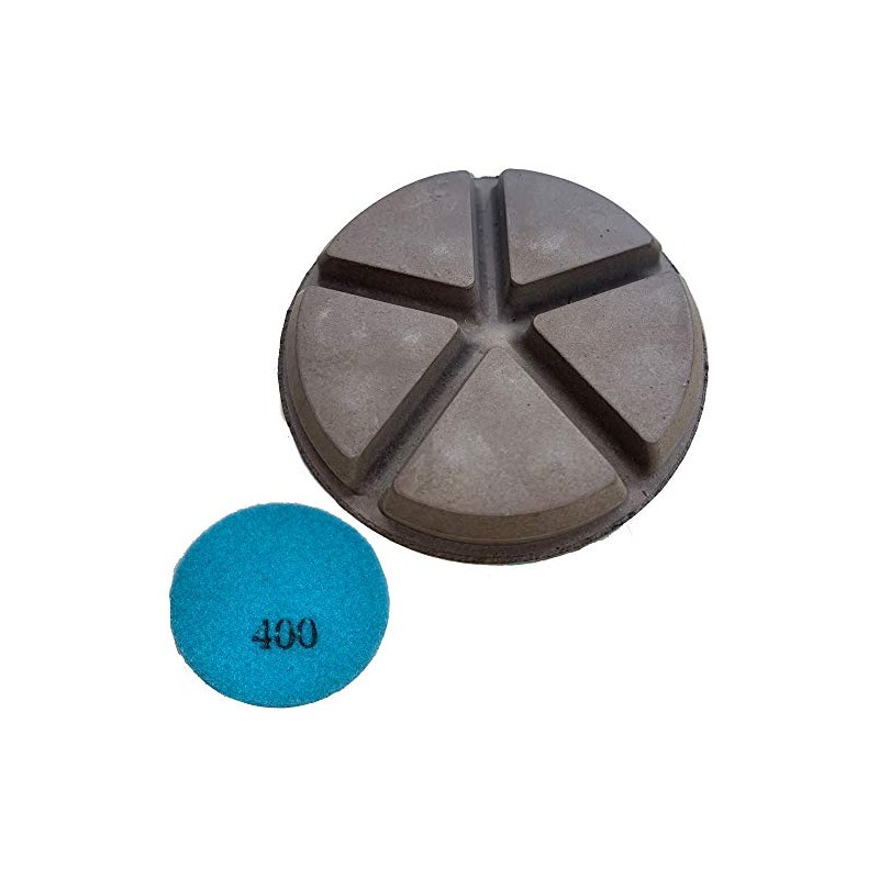 This 3" Slayer Ceramic bond diamond floor disc is from the set for polishing concrete slabs. This is the 400 grit pad which is used on floor machines and auto-scrubbers for continuing the polishing process. These have a very long life and while they do not last forever, it is close :). Used in series from 30 through 400 grit they will bring the floor to a low gloss finish. If a higher gloss is desired you can then use resin discs and/or polishing compound to get the stone to pop.