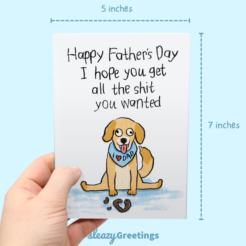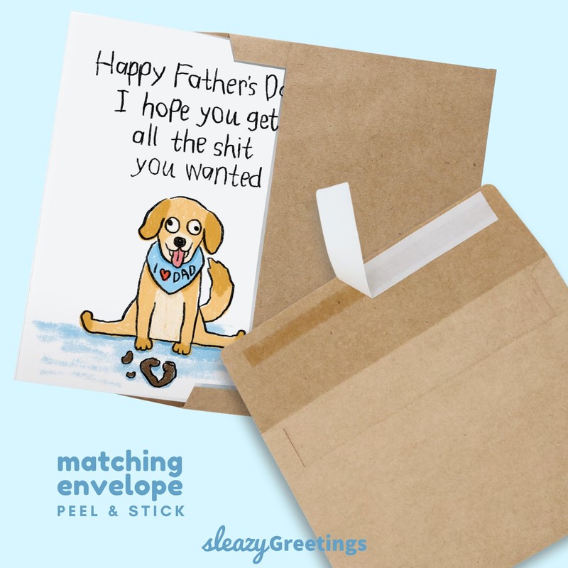 Sleazy Greetings Funny Happy Father's Day Card for Dad from Daughter or Son with Matching Envelope | 5 x 7 Inch Golden Retriever Dog Poop Birthday Card for Dad | Thanks For Putting Up With All My