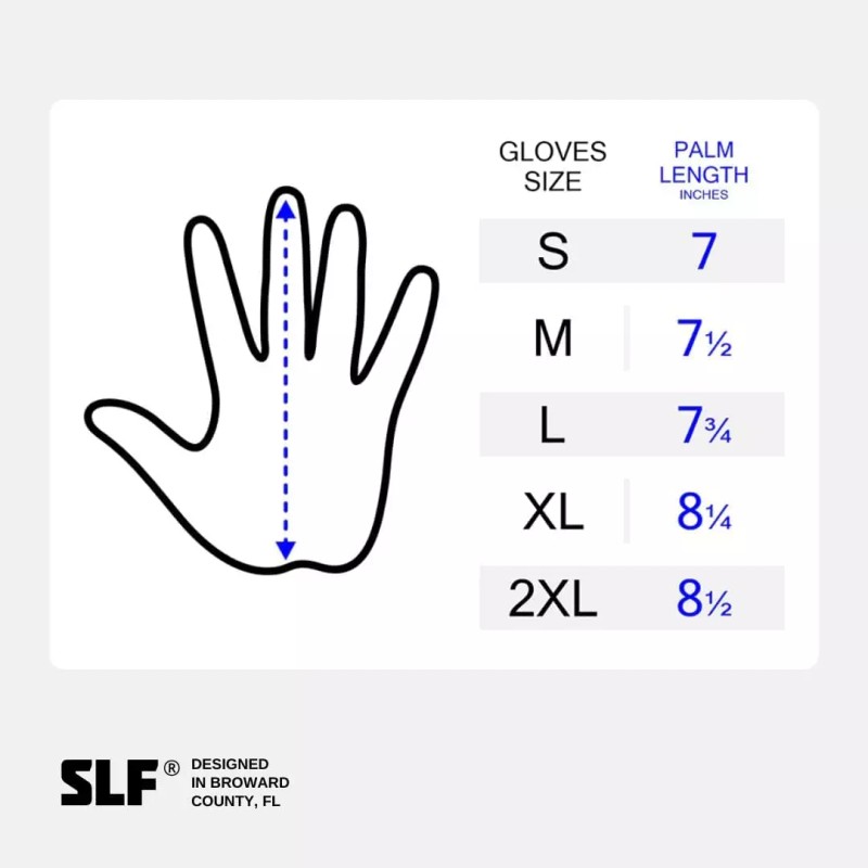 - Get the Perfect Size - Simply measure from the base of your palm (right at the wrinkle) to the tip of your middle finger. Small = 6.5 inches / Medium = 7 inches / Large = 7.25 inches / XL = 7.75 inches / XXL = 8 inches