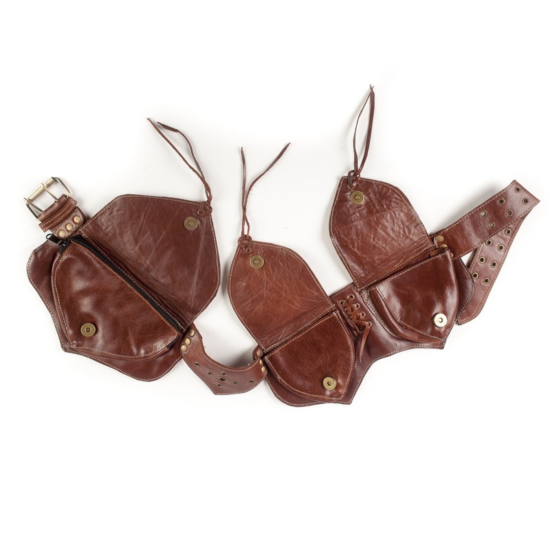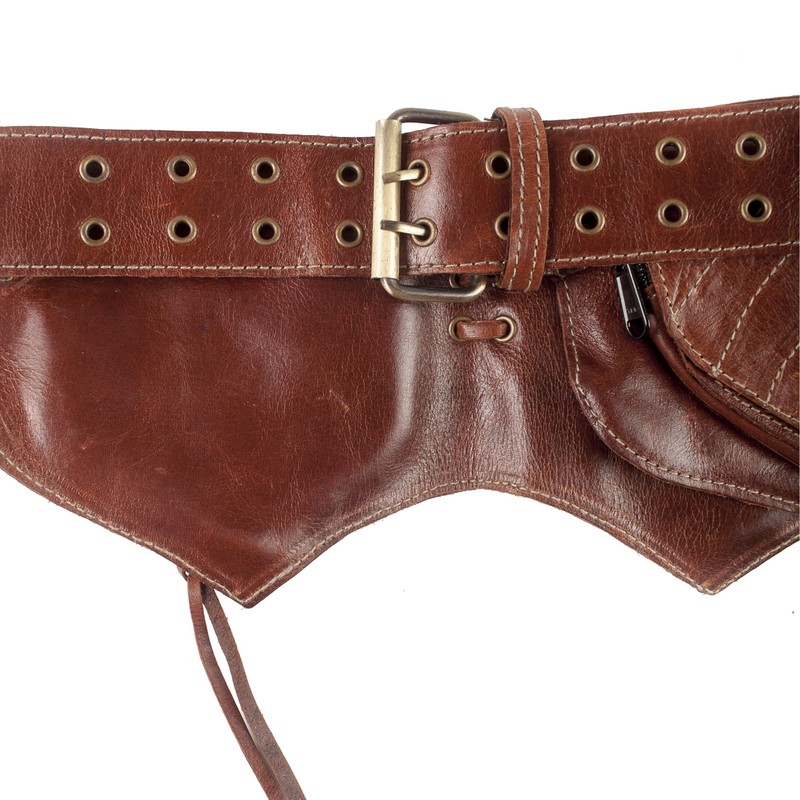 Sleek and Studded Leather Hip Belt-Brown-One Size