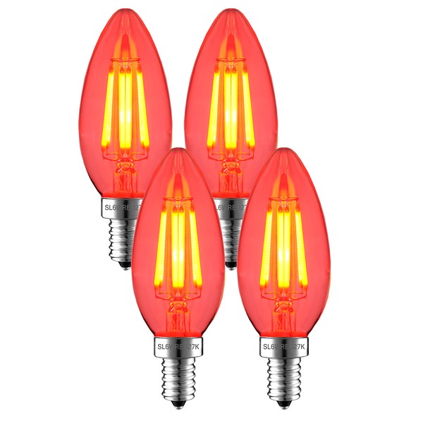 SLEEKLIGHTING - foco LED de filamento E12 de 5 W, foco roja (reemplazo incandescente de 60 W, punta de torpedo, cubierta de vidrio transparente E12, base de 4 unidades