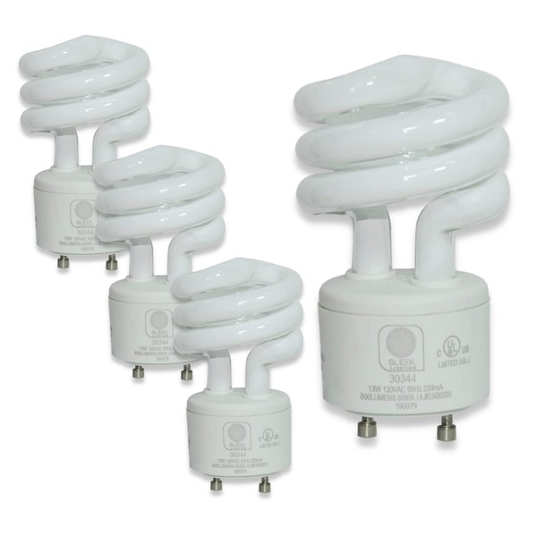 SLEEKLIGHTING SLEEKLIGHTING - 13Watt GU24 Base 2 Prong Light Bulbs- UL-13w 120v 60hz Light Bulb- Mini Twist Lock Spiral -Self Ballasted CFL Two Pin Fluorescent Light Bulb- 6500K Super White Daylight- 4pack-