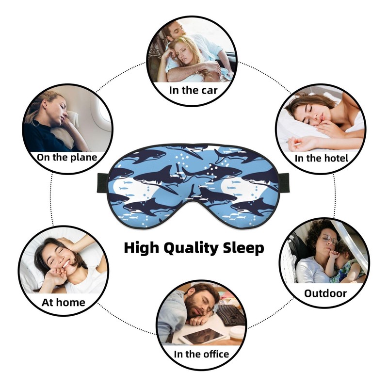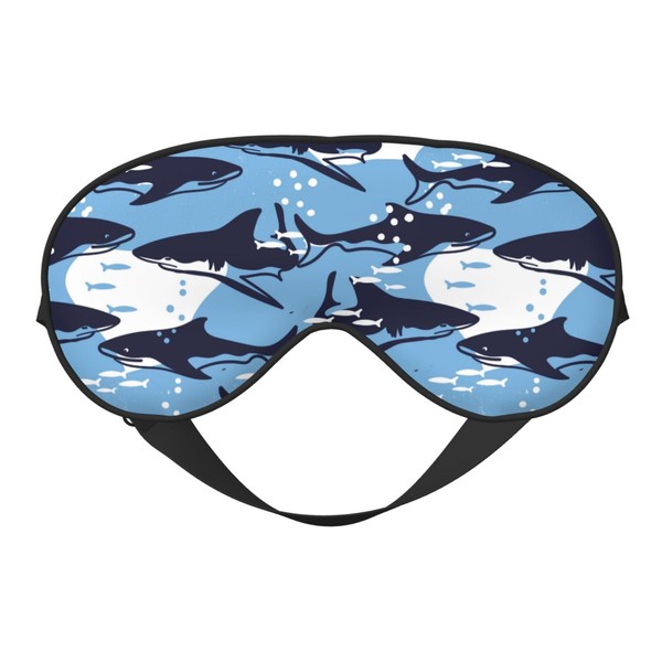 Sleep Eye Mask Abstract Blue Sharks and Fish Sleep Mask for Women Men Comfortable Eye Mask with Adjustable Strap Soft Eye Cover Blindfold for Travel Yoga Nap Shift Work