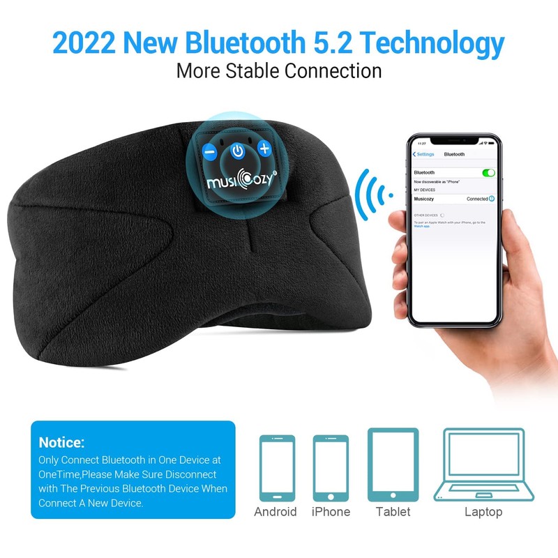 - 💎【Long Battery Life】MUSICOZY Sleeping mask headphones provide rechargeable battery, upgraded battery chip takes 2-2.5 hours charging and provides up to 10 hours music playback, you can enjoy the music all night long, the sleep mask music headband will automatically off when the battery runs past, won’t be waked up at night. HD HIFI sound with the latest Bluetooth5.2 technology. sleep headphones mask pair with any Bluetooth-enabled devices quicker,ideal for those who are light sleepers!