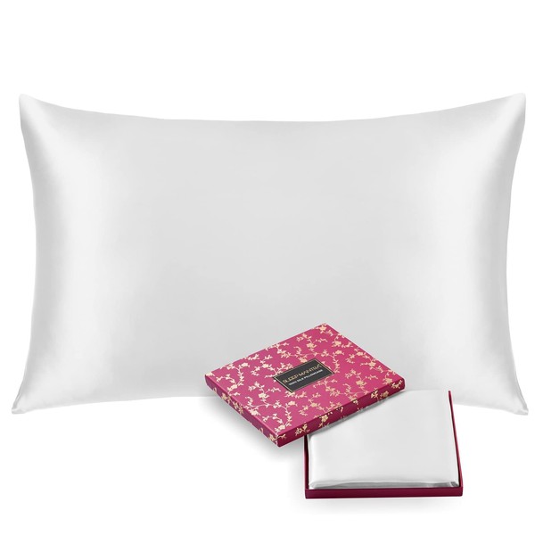 - 100% SILK PILLOWCASE WITH A FRENCH CHARMEUSE WEAVE: Not all silk pillowcases are made equal. Our luxury mulberry silk pillowcase weighs 22 momme but that shouldn’t be the only factor you should consider while making the purchase. The French charmeuse weave is what makes us special — which ensures that our pillowcase never loses its shine or becomes dull even after several washes. Includes one King silk pillowcase that measures 20" L X 36" W with hidden zipper closure