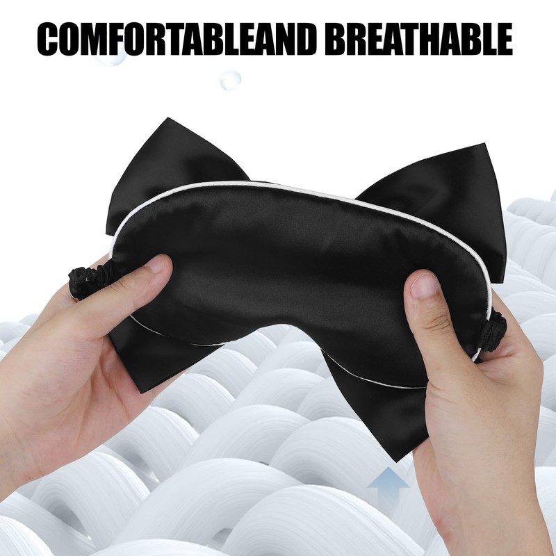Sleep Mask Adjustable Silk Blackout Eye Mask with Bowknot Princess Style Perfect for Home Photography (White + Black)