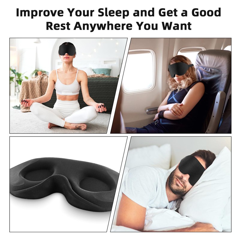 - 3D eye mask with memory rebound foam, soft and lightweight, comfortable and breathable, 99% opaque