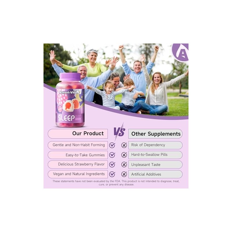 Ameri-Vita Sleep Melatonin Gummies are crafted. Each gummy contains 1.5mg of melatonin, paired with ingredients like GABA, and magnesium