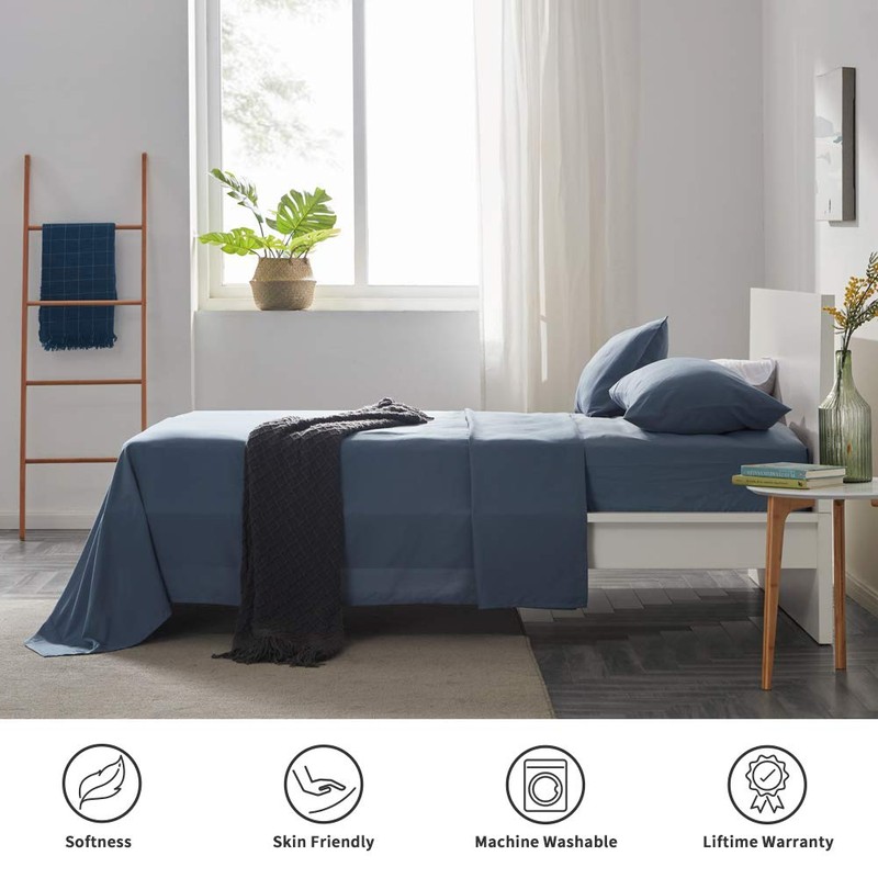 SLEEP ZONE Bed Sheet Set Cooling with Nanotex Moisture Wicking Technology Double Brushed Soft Wrinkle Free Fade Resistant Easy Care Sheets 3 PC, Flint Blue,Twin