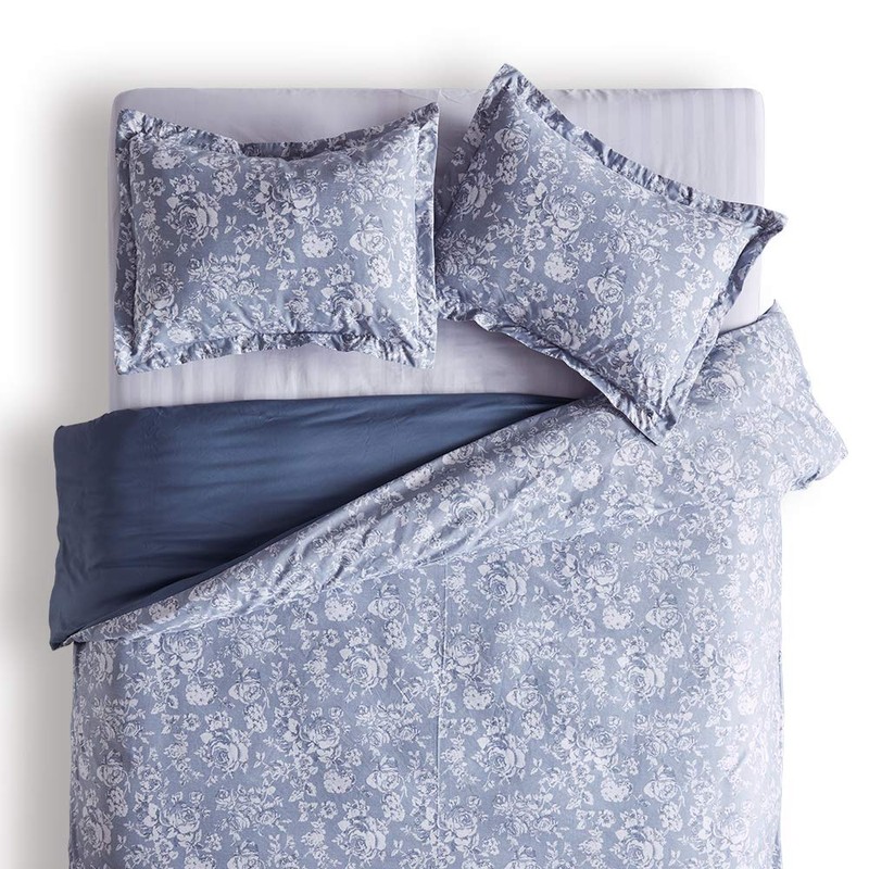 SLEEP ZONE Bedding Duvet Cover Sets Printed Pattern Elegant Peony 120gsm Ultra Soft Zipper Closure Corner Ties, Blue,Full/Queen (90 X 90 inch | 2 Pillow Shams)